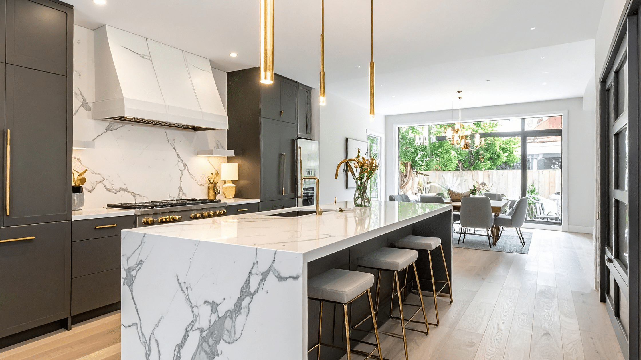 Compared to marble, quartzite is significantly harder and more resistant to scratches and etching. You get the luxurious look of marble, without worrying about damage from spills or heavy use.